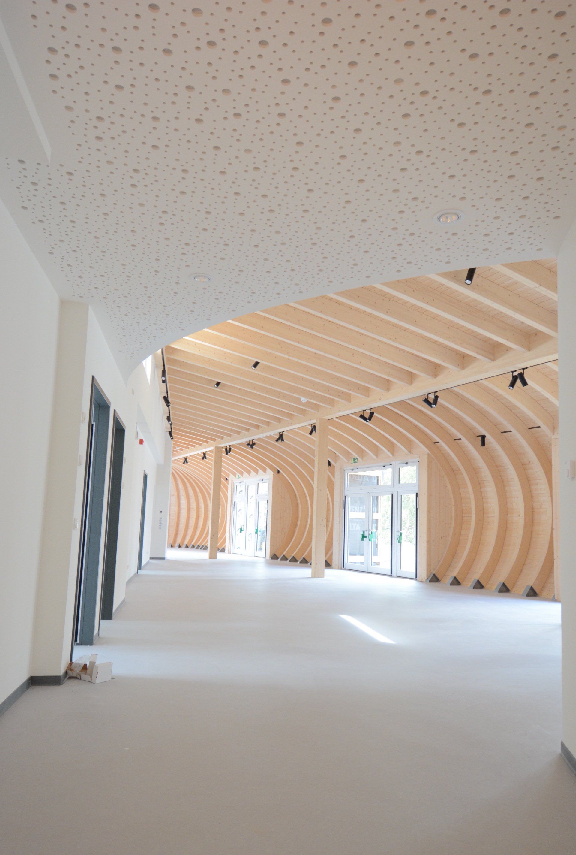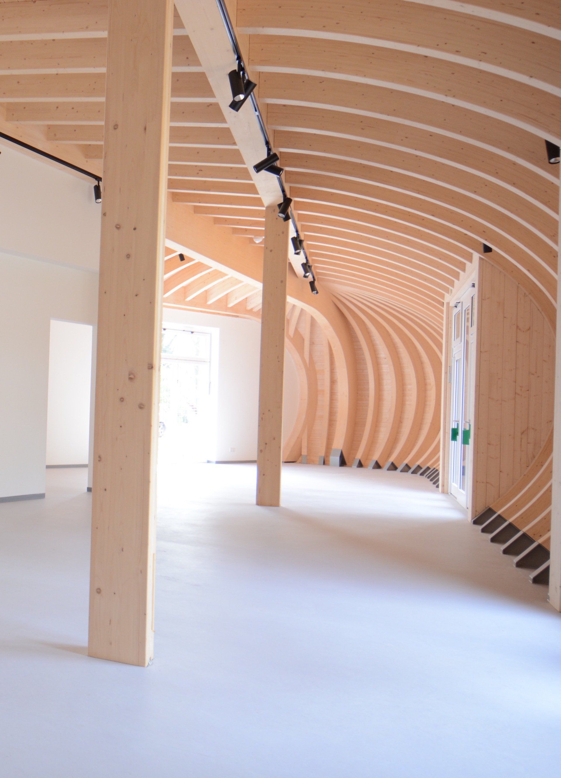 Kraftvoll und gleichwohl filigran präsentieren sich die Pärchenstützen, eine dicke Stahlbetonstütze am Ende einer unerwünschten Wand stand an ihrer Stelle.